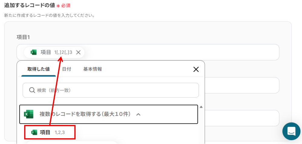 1.特定のMicrosoft Excelからレコードを取得する設定を行います。 まずは、下記の赤枠をクリックしてください。