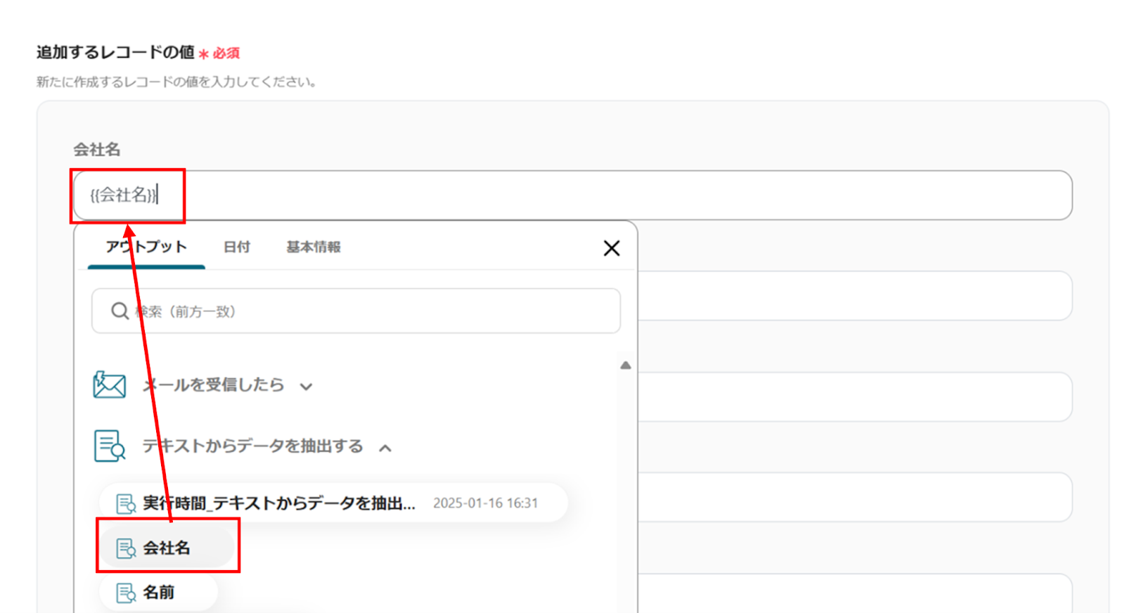 ステップ3:AI機能を使い、テキストからデータを抽出する
