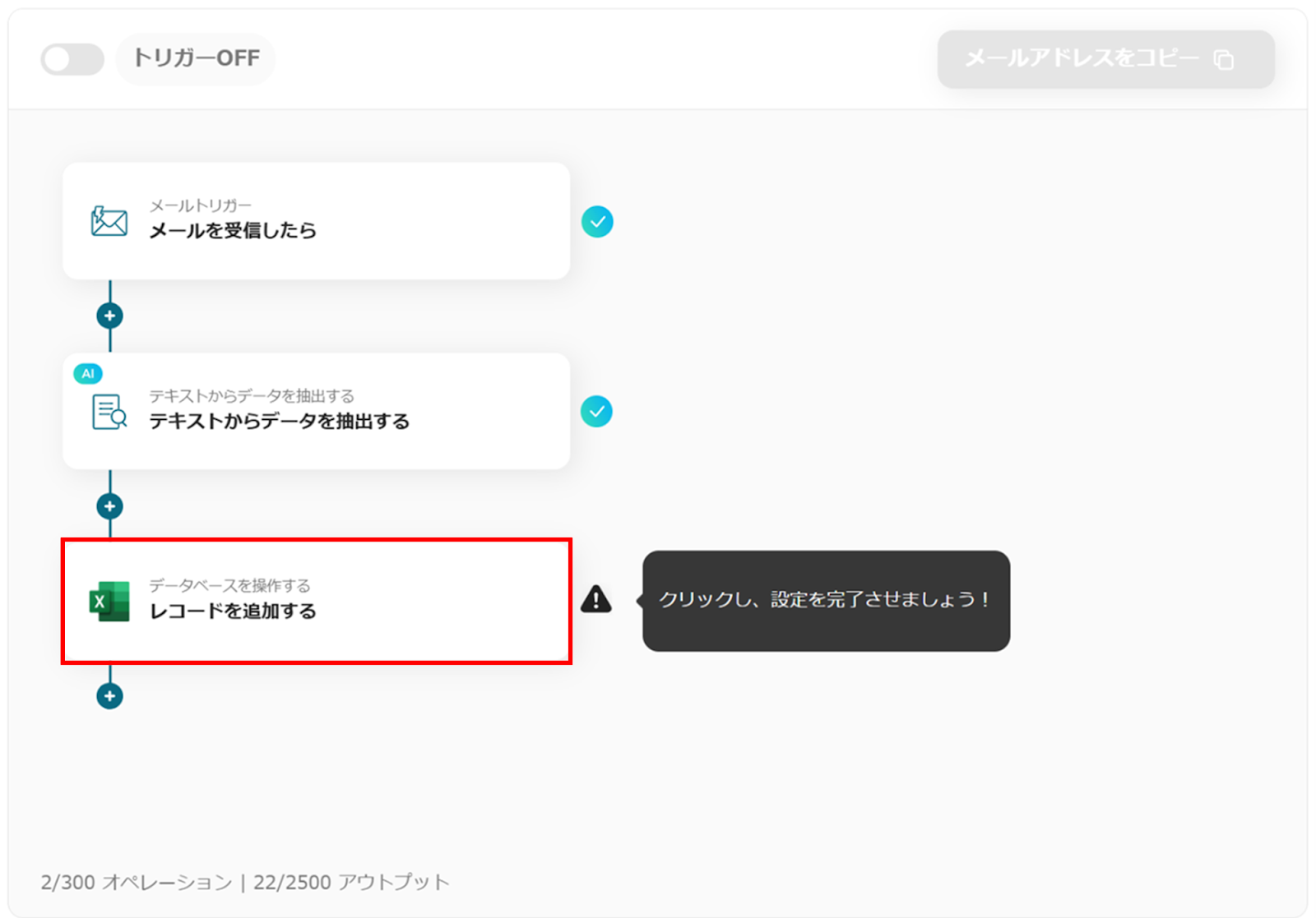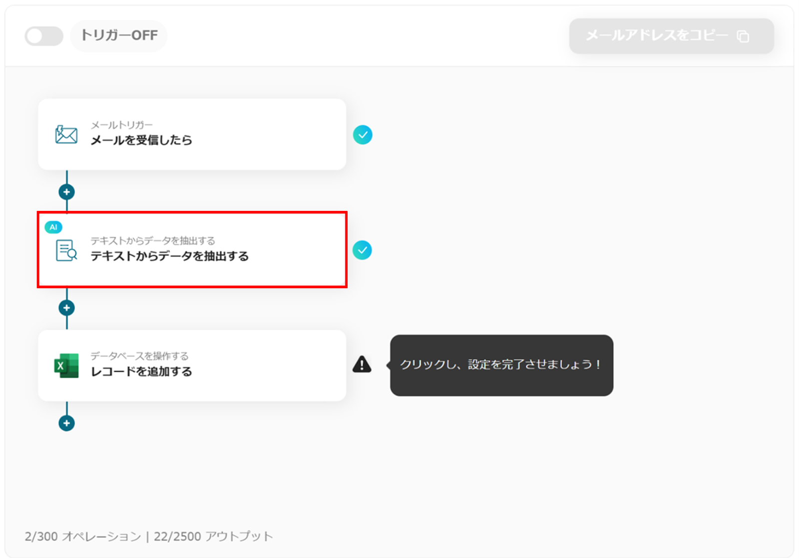 (1)次にAI機能を使い、テキストからデータを抽出します。