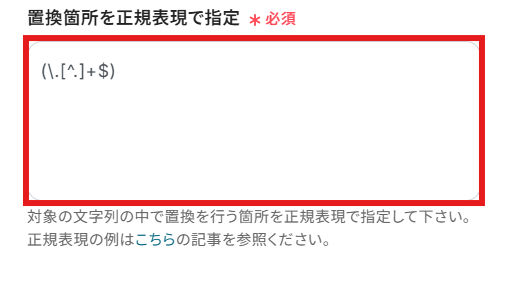 今回は拡張子を削除するために、デフォルトの「(\.[^.]+$)」を設定しています。