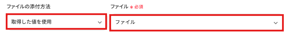 「ファイルの添付方法」と「ファイル」が以下の画像のように設定されているか確認しましょう。
