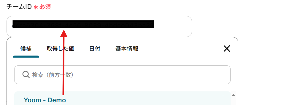 チームID・チャネルIDは下記のように候補から選択しましょう。