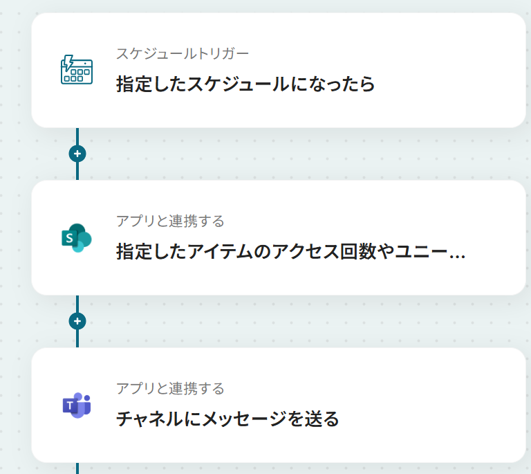 それではここから代表的な例として、毎週、Microsoft SharePointのアクセスログを取得してMicrosoft Teamsに通知するフローを解説していきます!