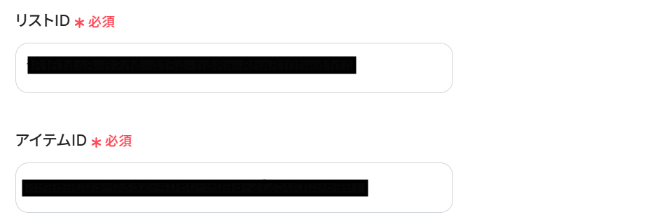 ・Confluenceのトリガー設定では、連携の対象とするConfluenceアカウントのクラウドIDを設定してください。 ・Microsoft SharePointのアクション設定では、フォルダを作成するサイトID、ドライブID、および親フォルダのアイテムIDをそれぞれ任意で設定してください。