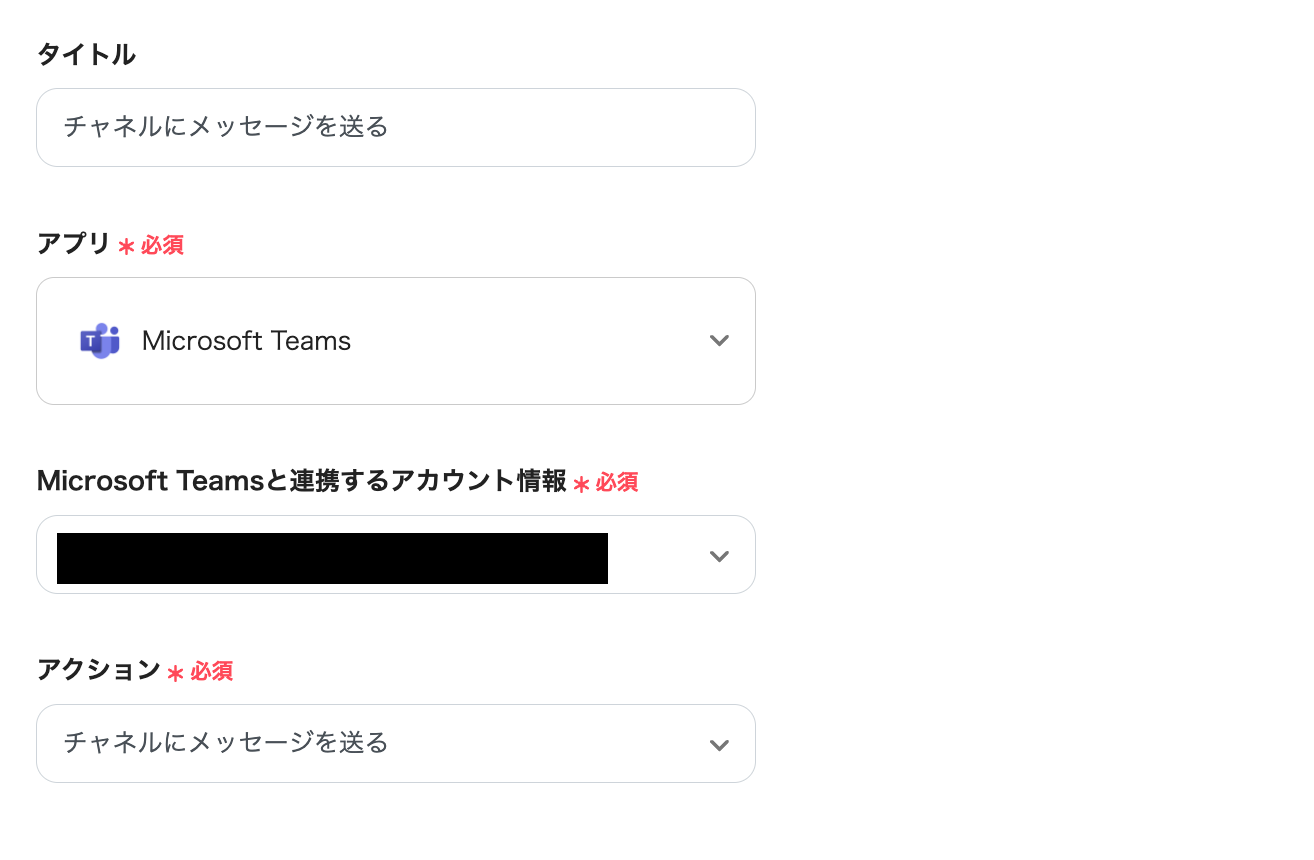 「チームID」や「チャネルID」の項目に情報を入力していきます。