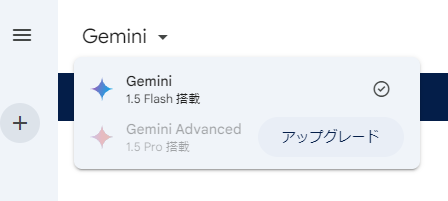 モデルについては、Geminiのページ左上をクリックすることで確認できます。