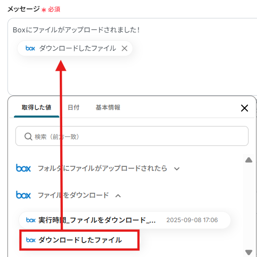 boxにファイルがアップロードされたらファイルを取得し、Microsoft Teamsと連携させて取得したファイルをチャットに送る
