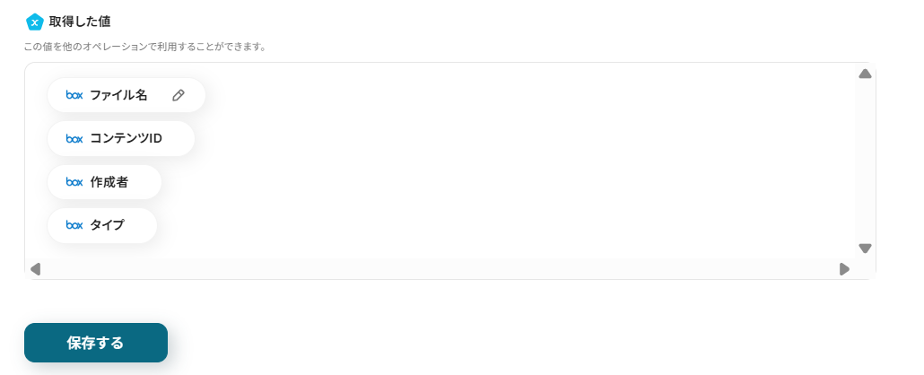 時間の節約:指定日時に自動でBoxの特定フォルダのファイル情報を取得し、Microsoft Teamsに投稿するため、手動での確認作業が不要になります。 情報の一元管理:Microsoft TeamsとBoxの連携により、最新のファイル情報をチーム全体で共有でき、情報の見落としを防ぎます。 業務効率の向上:自動化により、ファイル管理と情報共有のプロセスがスムーズになり、他の重要な業務に集中できます。