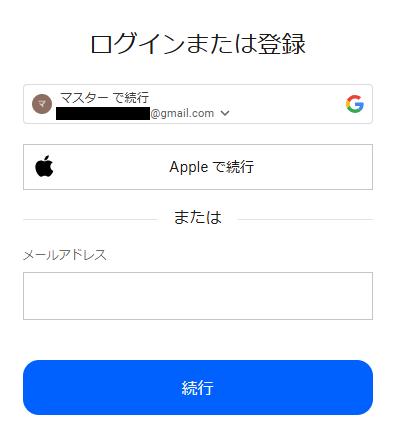 2.ログインをする 下記の画面になりますので、メールアドレスを入力し「続行」を押してください。 画面が遷移し、パスワード入力欄が表示されますのでログインしましょう。