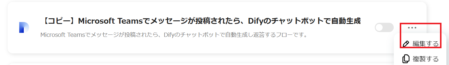「Microsoft Teamsでメッセージが投稿されたら、Difyのチャットボットで自動生成し返答する」 テンプレートをコピーする