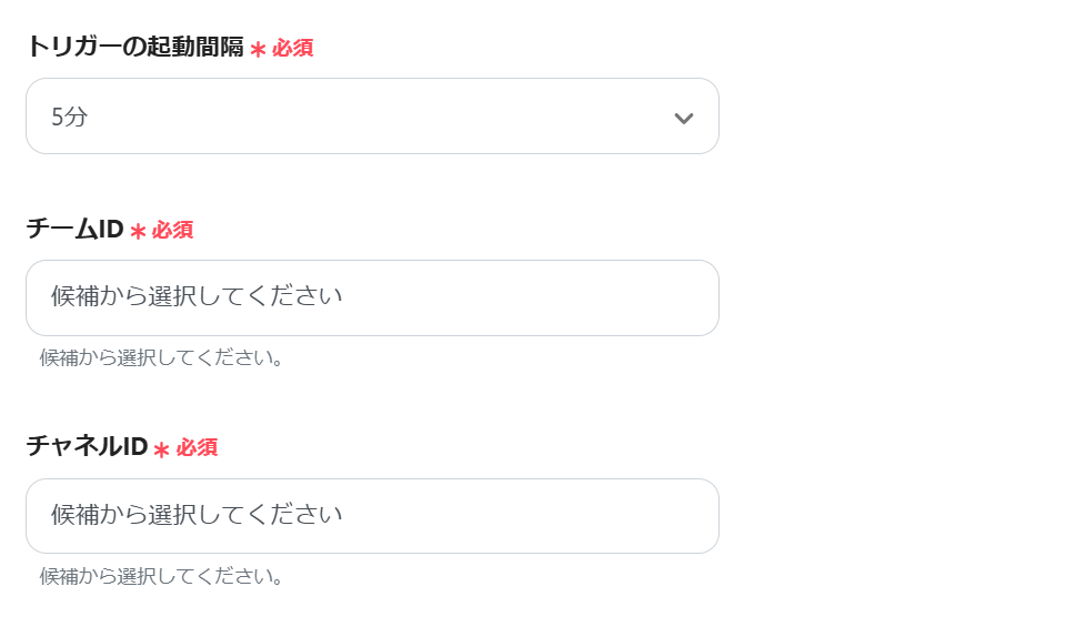 ※トリガーの起動タイミングは、5分、10分、15分、30分、60分のいずれかで設定できます。 ご利用プランによって、設定できるトリガーの最短間隔が違うので、その点は要チェックです。 なお、基本的にはそのプランの最短の起動間隔にしてお使いいただくことをおすすめします。