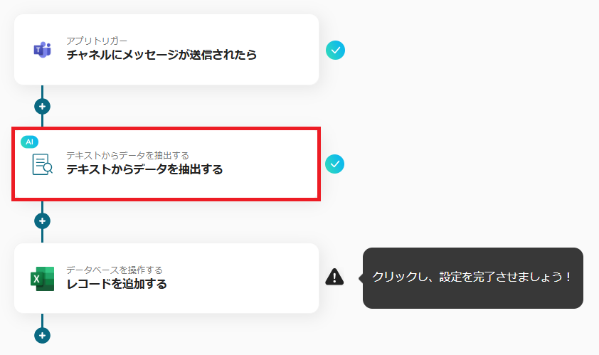 次に、メッセージからAIでテキストを抽出する設定を行います。