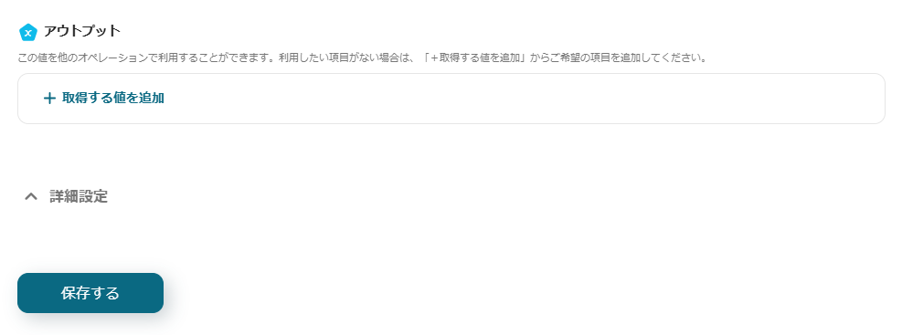 最後に、Microsoft Excelに取得した内容を追加する設定を行います。