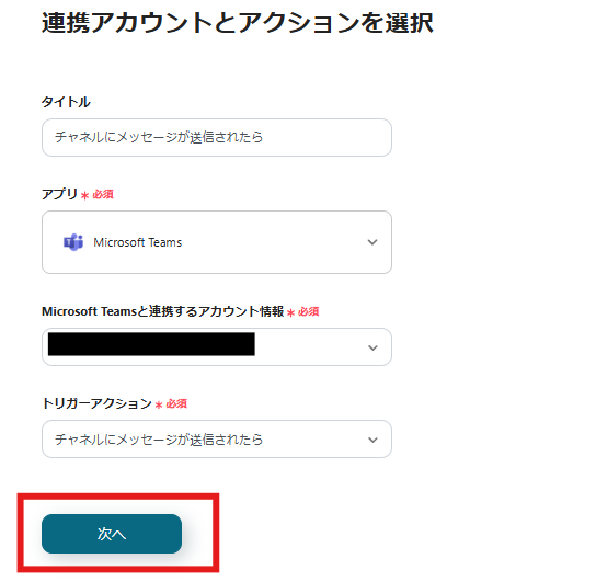 アプリトリガーのAPI接続設定の画面で設定を進めましょう。