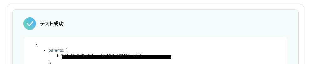 設定後、フローボットのトリガーとなるアクション(今回は新規チケットの作成)を行い、[テスト ]をクリックします。 テストに成功すると、以下のように表示されます。