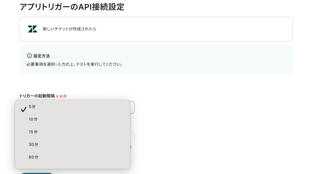 では、アプリトリガーを設定していきます。 「新しいチケットが作成されたら 」を選択してください。