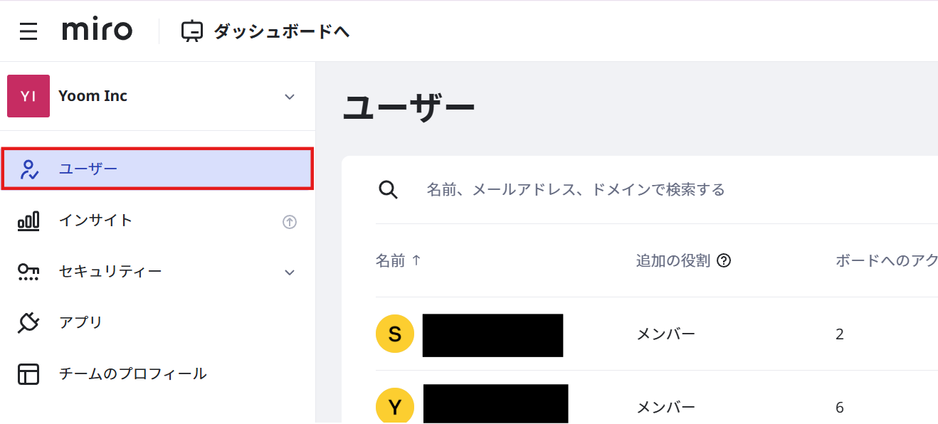 Miroの画面右上のタブを開き、プロフィールをクリックします。