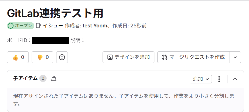 設定ができたら「テスト」をクリックし、実際にGitLabでイシューが作成されているか確認しましょう。