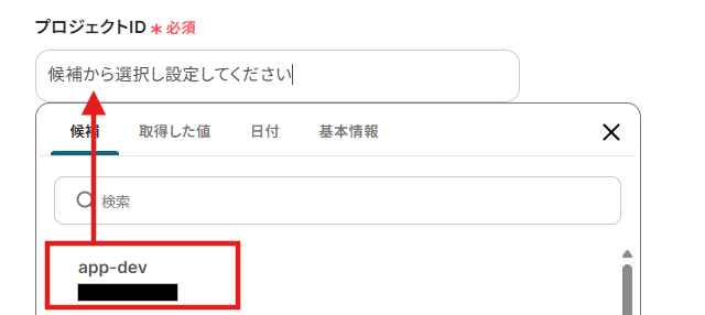 プロジェクトIDは以下のように表示される候補から選択しましょう。