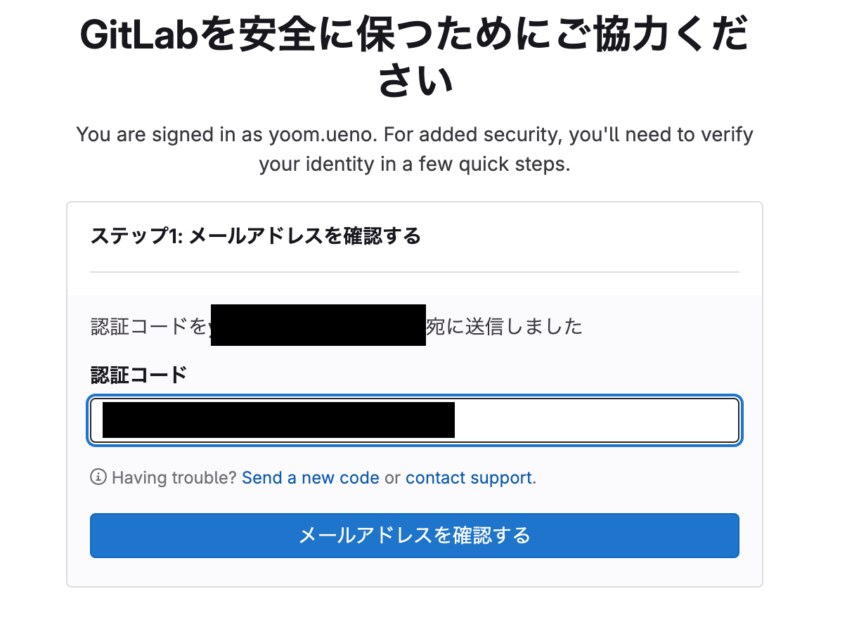 Yoomと連携したいGitLabの「ユーザー名またはメインのメールアドレス」と「パスワード」を入力します。情報入力後、[サインインする]をクリックしましょう。