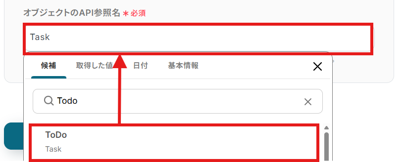 「オブジェクトのAPI参照名」を候補から選択しましょう。