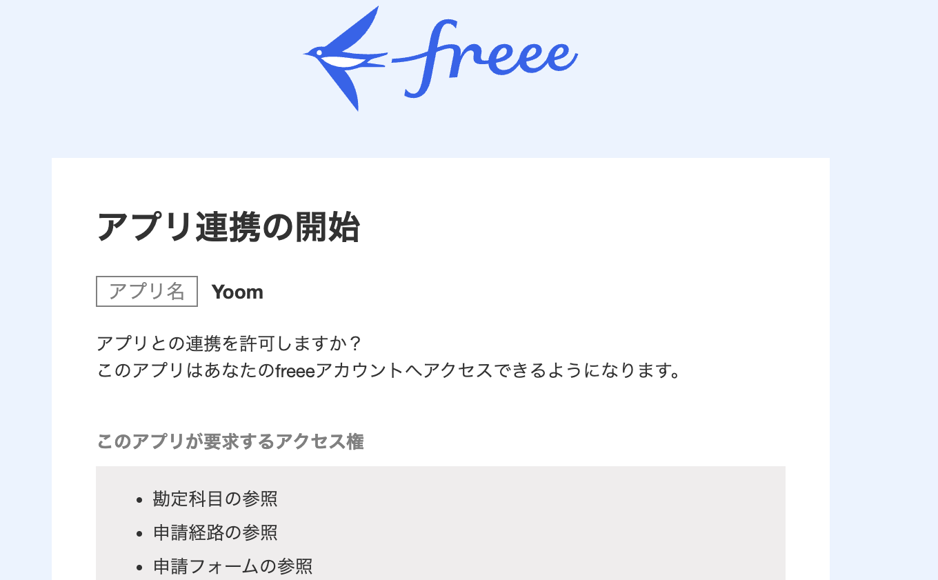 次にYoomとの連携に伴うアクセス権が表示されます。