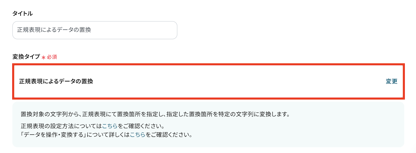 まずは「変換タイプ」が「正規表現によるデータの置換」になっていることを確認します。