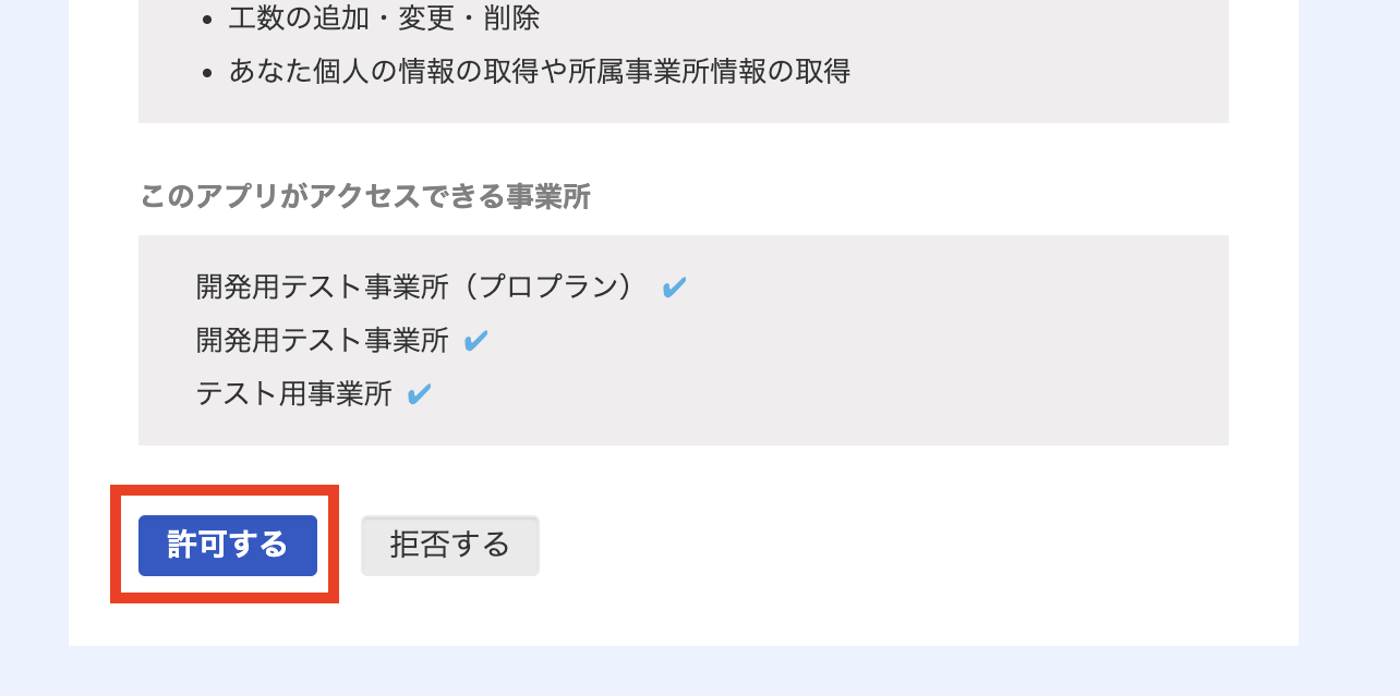 1番下までスクロールしていくと「許可する」ボタンがあるので確認の上クリックしてください。