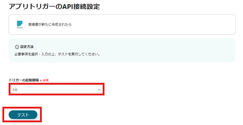 続いて以下の画像のような画面が表示されるため、アプリトリガーの起動間隔を設定します。