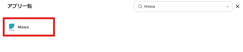 「新規接続」のボタンをクリックし、検索窓にMisocaと入力し、表示された候補をクリックします。