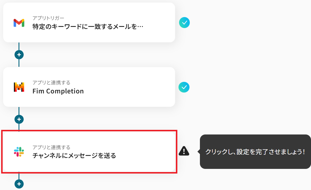 ステップ3と同様、アクションは「Fim Completion」のまま「次へ」をクリックします。