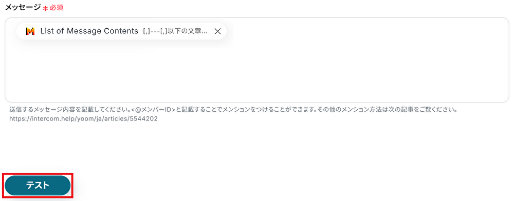 ここまで完了したらYoomの設定画面に戻りテストしてください。