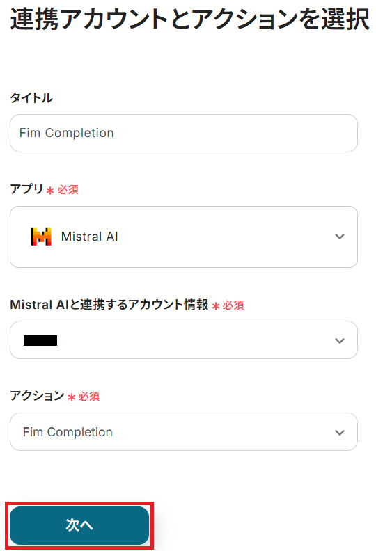 ステップ4:Mistral AIのアクション設定