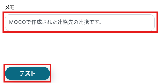 まずはMOCOとYoomが連携できているか確認するためテストを行います。