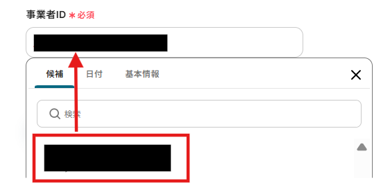 4.続いて「事業者ID」の入力欄をクリックし、候補から選択してください。