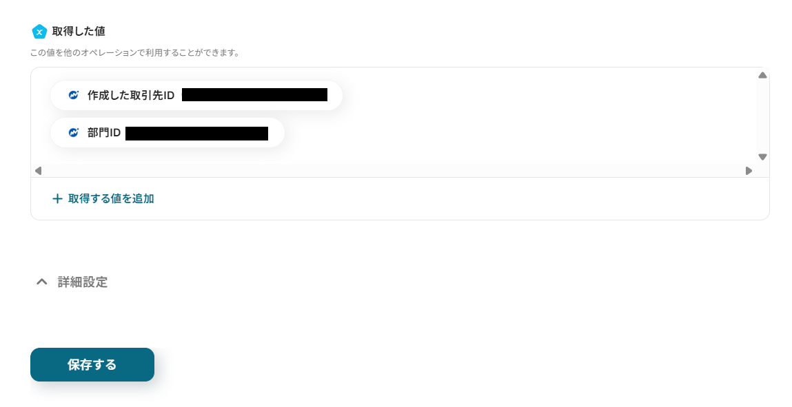 取引先IDが追加されたことを確認したら、Yoomに戻り設定を保存します。