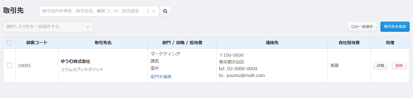 テストが成功すると、マネーフォワード クラウド請求書に取引先が登録されるので確認してください。