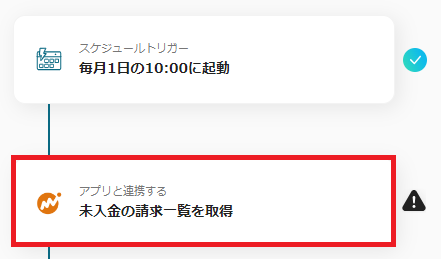 1. フローボットの「アプリと連携する:未入金の請求一覧を取得」をクリックします。
