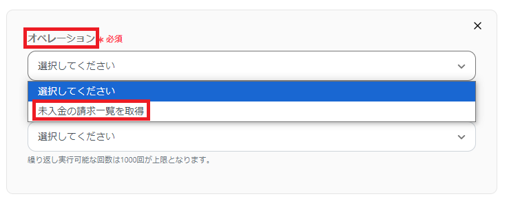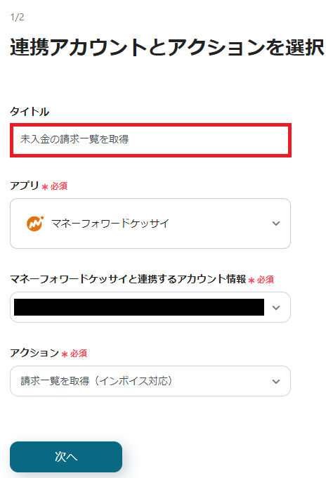 ステップ4: マネーフォワード 掛け払いの未入金の請求一覧を取得するアクションの設定