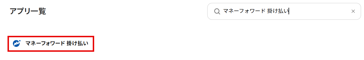 右上のマイアプリの新規作成から検索窓に「マネーフォワード 掛け払い」と入力し、アイコンをクリックしましょう。