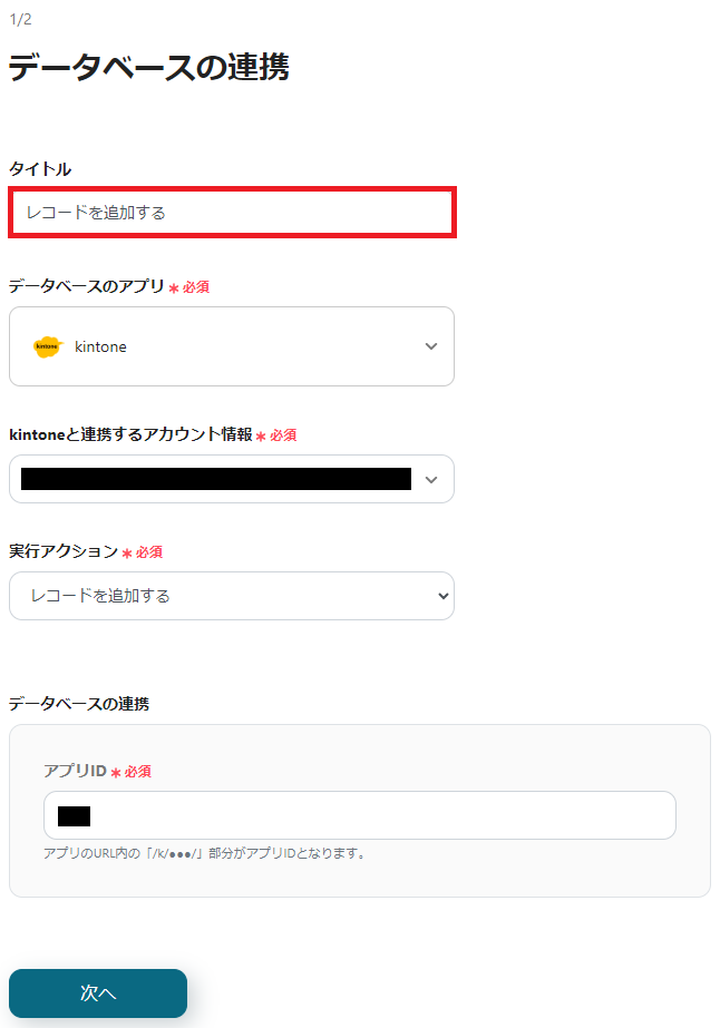 タイトルを必要に応じて変更し、「次へ」をクリックします。