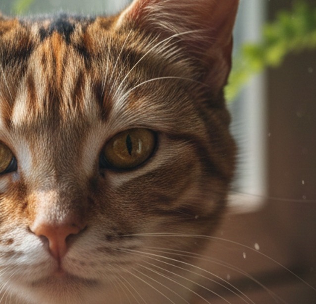 サイバーパンクな街並みを背景に、空飛ぶ車に乗っている未来の猫、ネオンライト、雨、映画のような雰囲気、クローズアップ