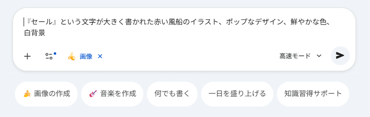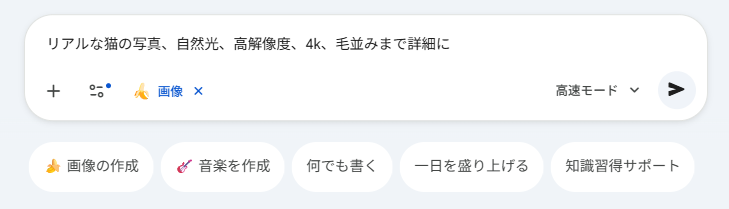 Geminiのチャット画面で、まるで友達と会話するように日本語で指示を出すだけで、驚くほど高品質な画像が作れます。