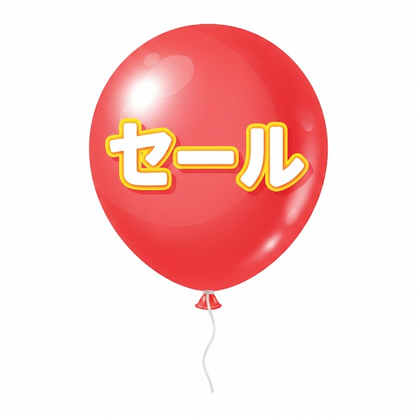 生成された画像を確認すると、指定した「セール」というカタカナが、風船の上に描かれています。完璧な明朝体やゴシック体とはいきませんが、認識できるレベルで描写されています。