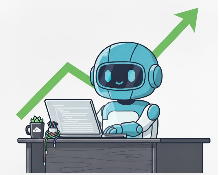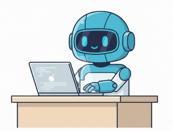 生成された画像に「ノートパソコンの前でタイピングしている様子にして」と指示を追加します。Nano Bananaの凄さはここで、ロボットのデザインを維持したまま、ポーズだけを自然に変更してくれます。