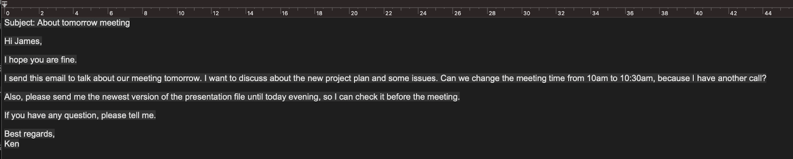 - 英文メール(件名+本文)