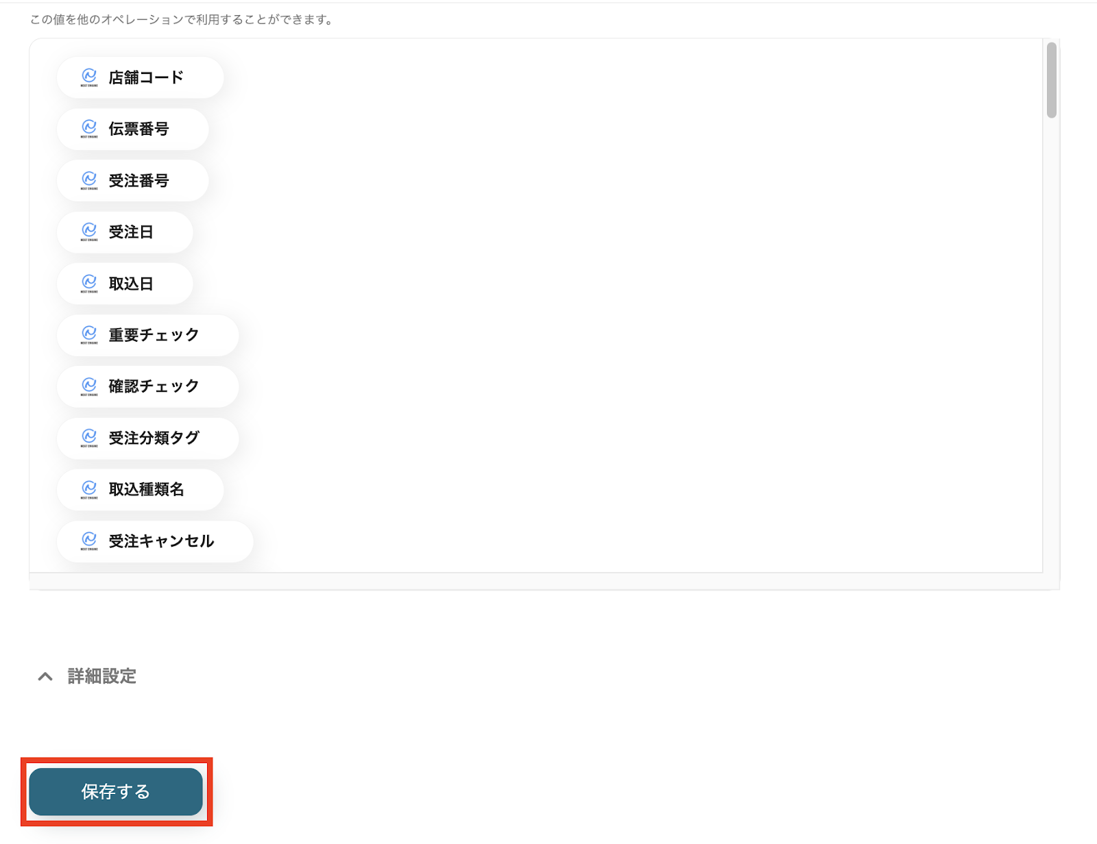 テストが完了後、「保存する」をクリックすると、Airtableのアクション設定は完了です。
