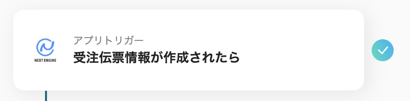 「受注伝票情報が作成されたら」の横にチェックマークが付いたら、NEXT ENGINEのトリガー設定は完了です。