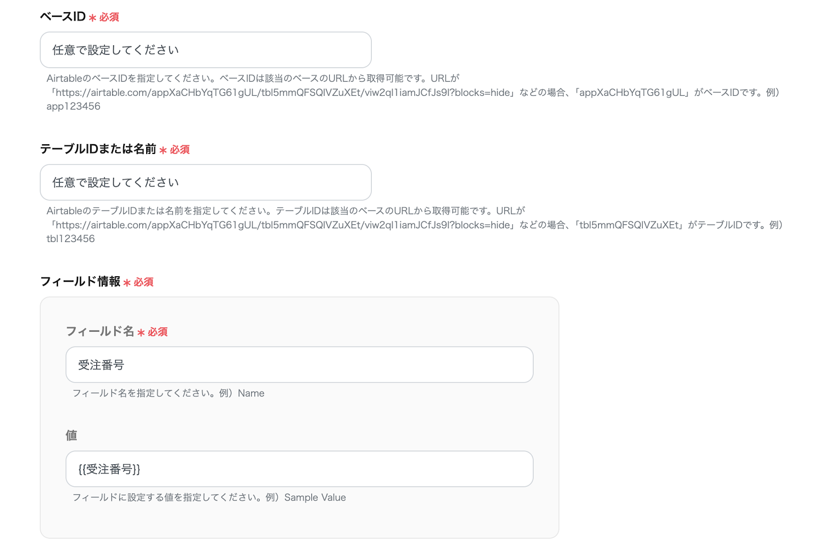 これで、NEXT ENGINEで受注伝票が作成されたらAirtableにも自動的に情報が追加されます。