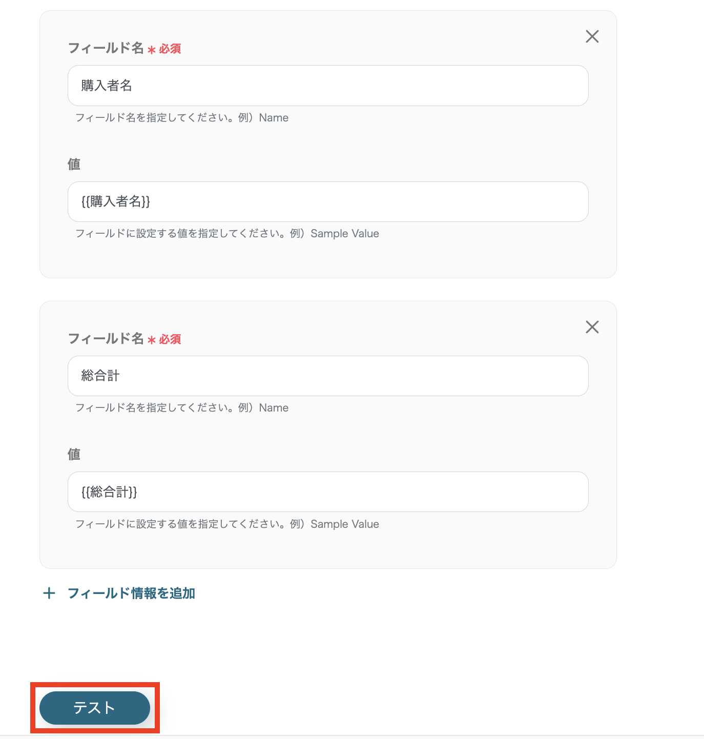※「+フィールド情報を追加」をクリックすると、さらにフィールド情報の追加が可能です。